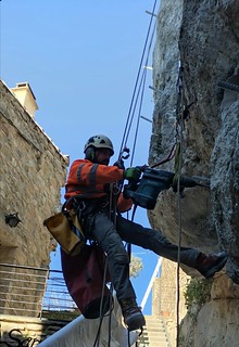 La société Hypogée va intervenir dés le 9 décembre pour de la sécurisation et du débroussaillage en contre-bas du chemin de ronde. Ce sont des cordistes qui vont ouvrés. C’est la même équipe qui était intervenue pour la sécurisation des tours.