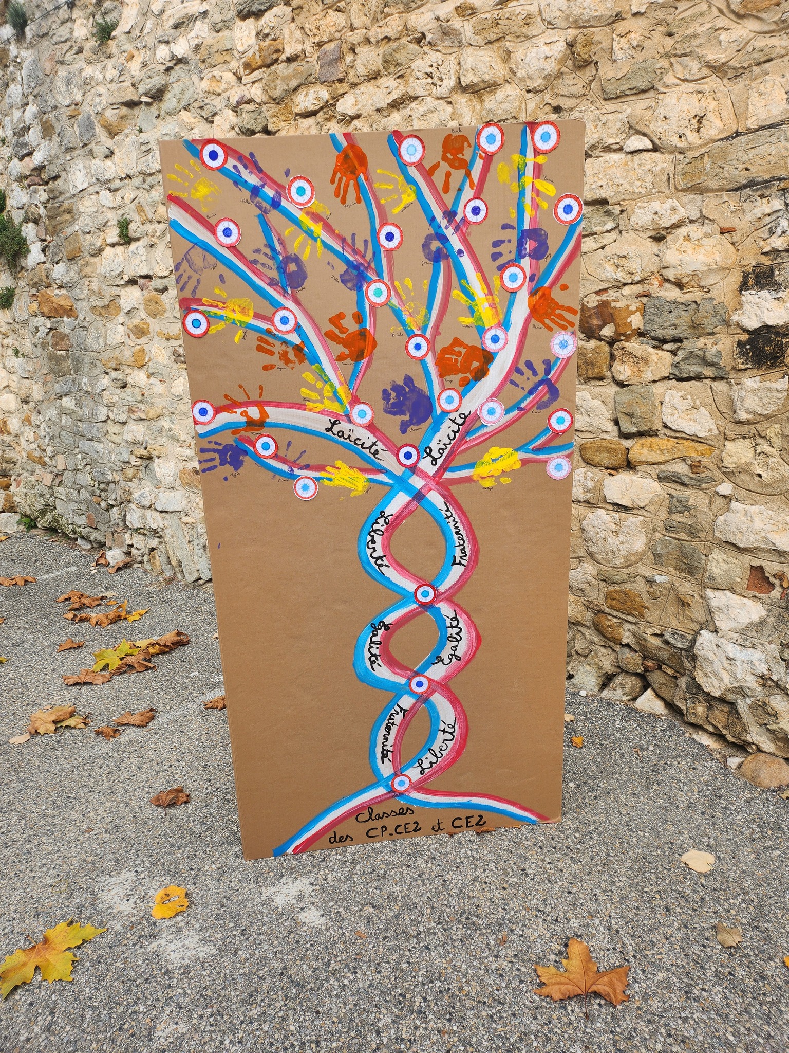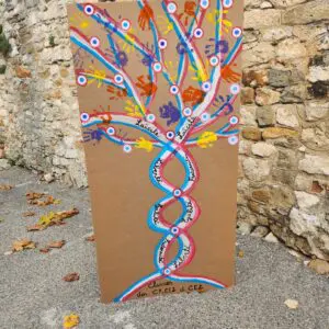 Entouré des habitants et des élus, le Maire a prononcé un discours empreint d’émotion et de reconnaissance avec la présentation du magnifique arbre réalisé par les enfants de l’école de Saint-Julien-de-Peyrolas.