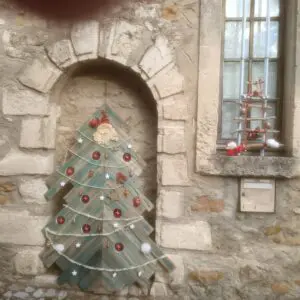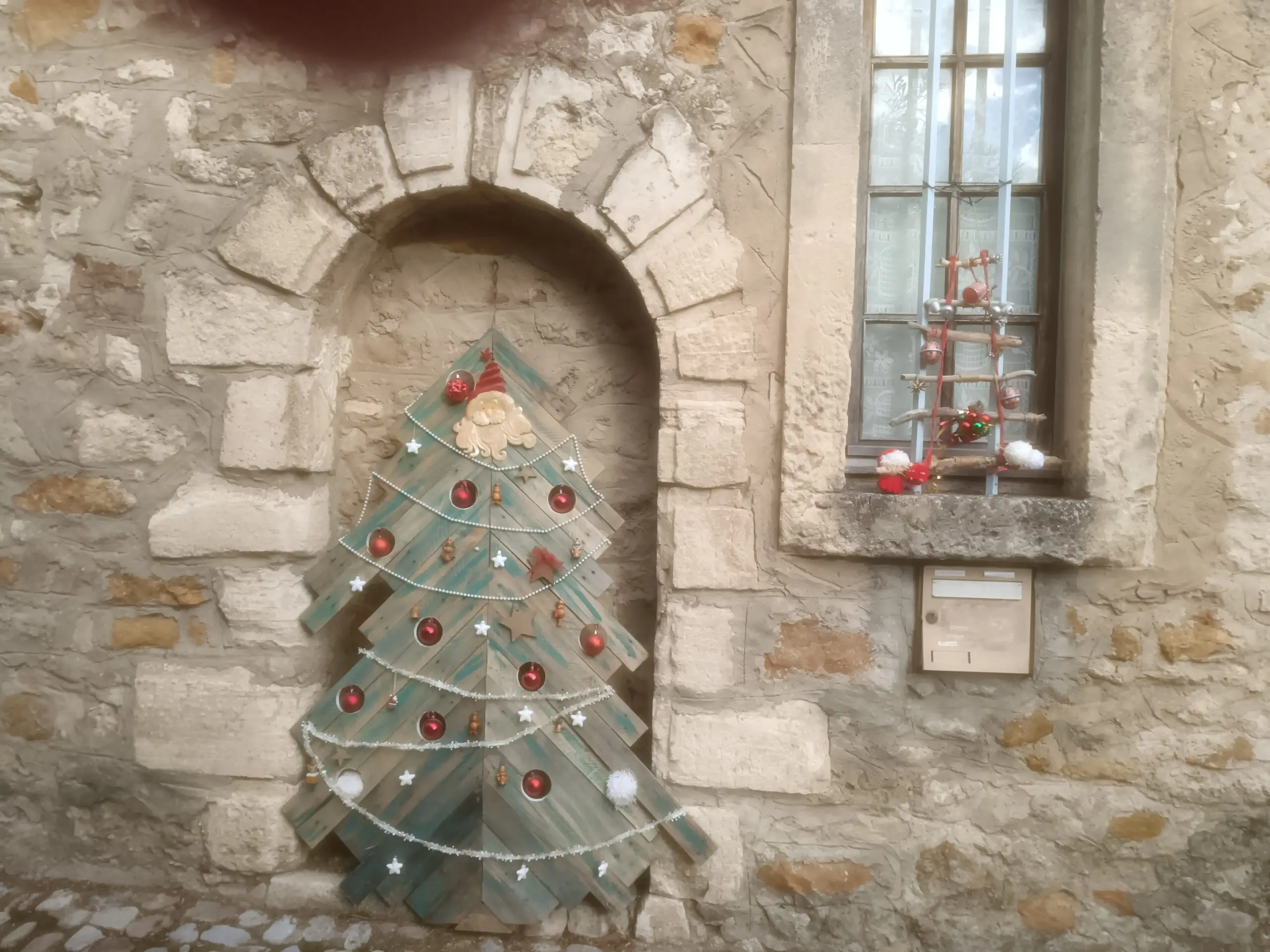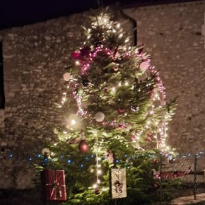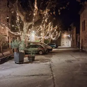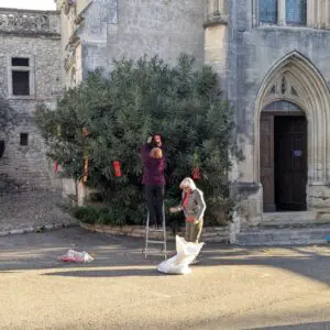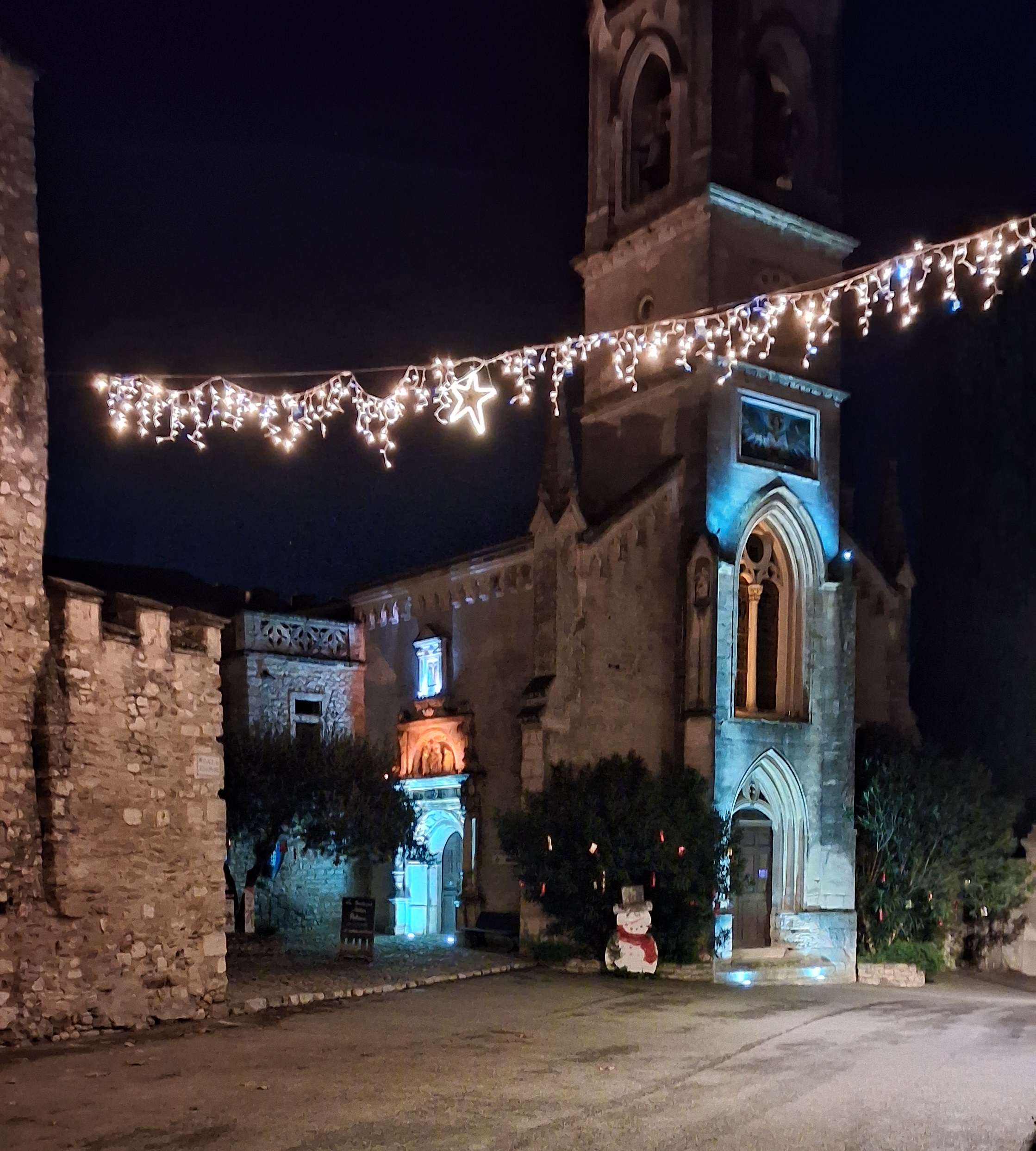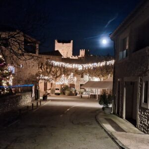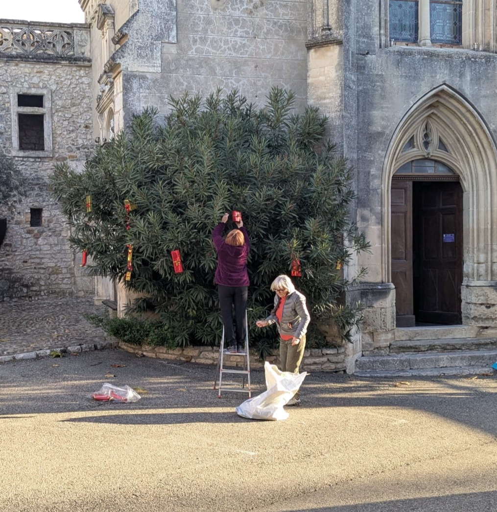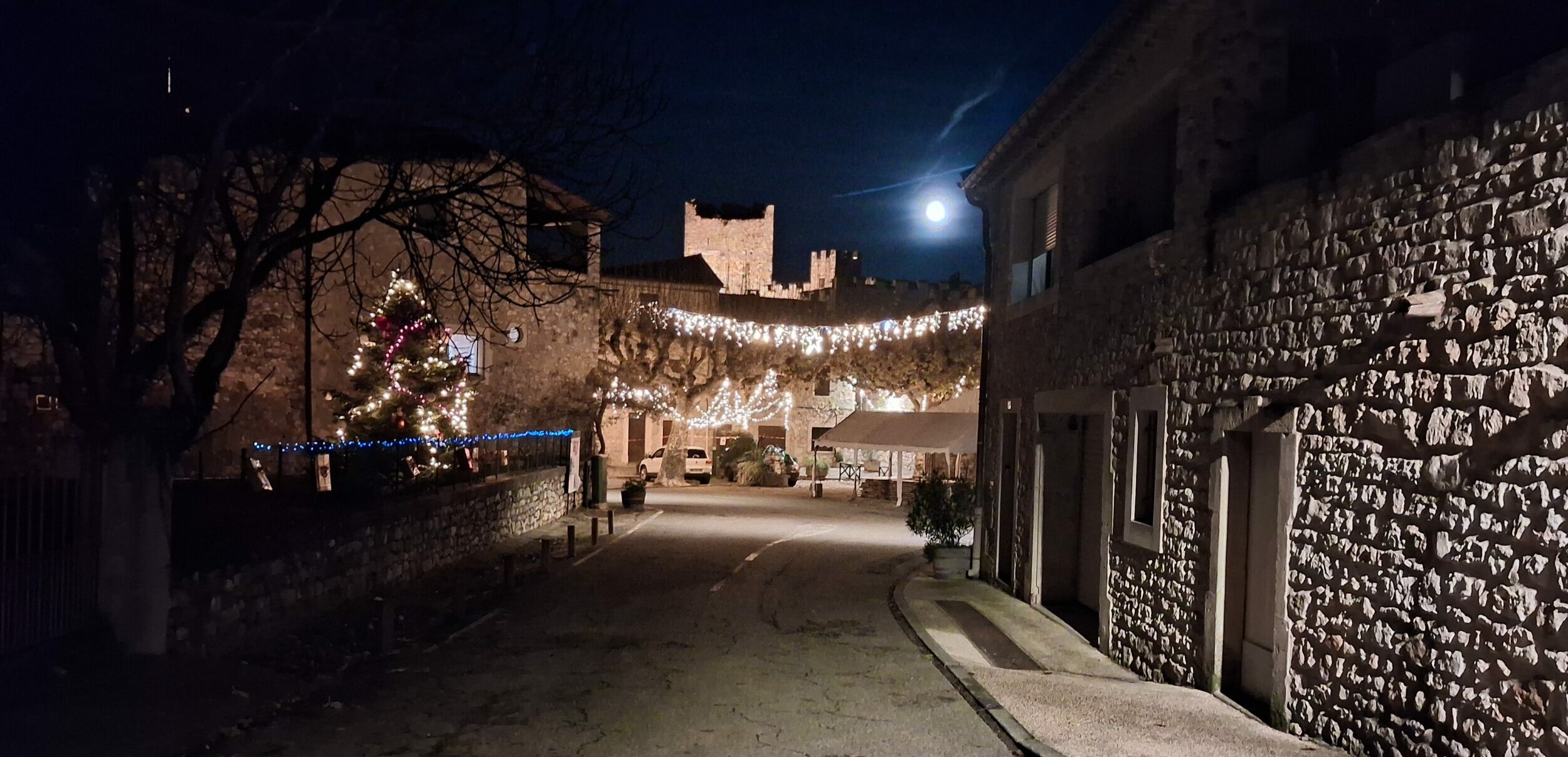 Les dames d’Aiguèze d’un coup de baguette magique ont transformé le village avec leurs belles décorations, tandis que Fabrice, Daniel, Estéban et Patrick ont joué les équilibristes pour installer les guirlandes lumineuses. Grâce à tous ces petits lutins le village c’est paré de belles couleurs et s’illumine désormais à la tombée du jour.