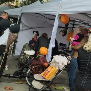 À 15h, un concours de déguisements, animé par Tamara, a récompensé les plus créatifs, aussi bien chez les enfants que chez les adultes et l’estrade a vite atteinte ses limites de taille.
